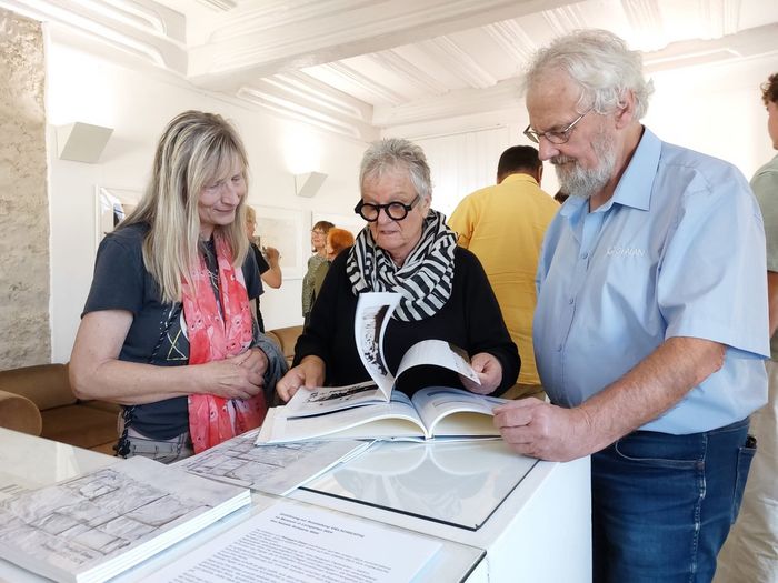 Interessierte Vernissagenbesucher an der Ausstellung in Schleiz im September 2025